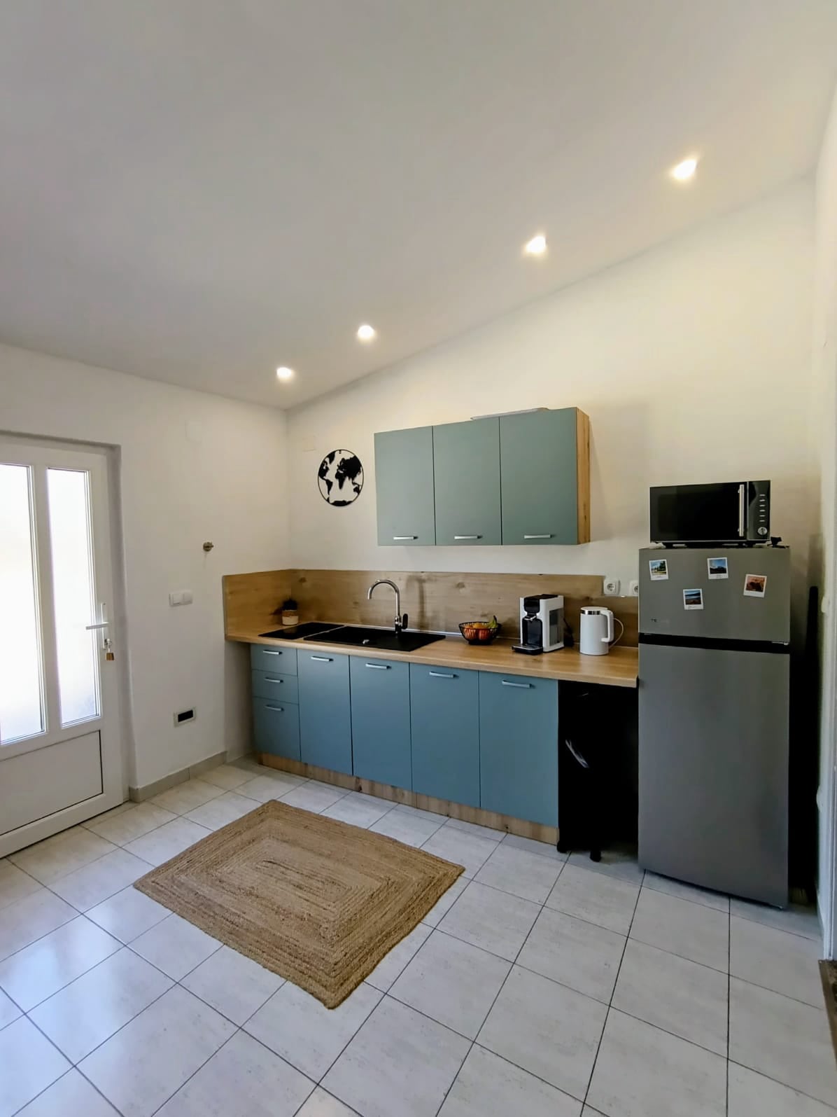 Wohnküche mit Eckbank und Esstisch - 2 Glaskeramikherdplatten - Mikrowelle